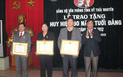 Nhân dịp này, Đảng bộ Văn phòng Tỉnh uỷ đã công bố quyết định tặng Huy hiệu Đảng đợt 3-2-2012 cho 3 đảng viên là đồng chí Bùi Khánh Thái, Hoàng Thị Vân và Hoàng Văn Vũ đang sinh hoạt tại Đảng bô.