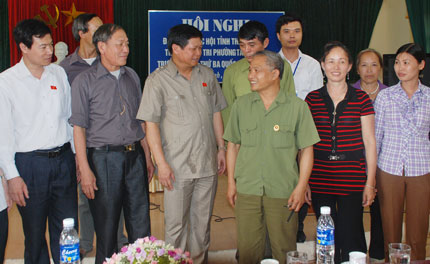 Chuẩn bị cho Kỳ họp thứ ba, Quốc hội khóa XIII, sáng 3/5, các đại biểu Quốc hội: Phạm Xuân Đương, Ủy viên Trung ương Đảng, Bí thư Tỉnh ủy, trưởng đoàn đại biểu Quốc hội tỉnh; Nguyễn Thanh Tùng, Ủy viên Ban Thường vụ, Chủ nhiệm Ủy ban Kiểm tra Tỉnh ủy đã tiếp xúc cử tri phường Tân Thịnh, T.P Thái Nguyên.