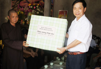 Nhân Đại lễ Phật đản Phật lịch 2556 - Dương lịch 2012, ngày 2-5, Đoàn công tác do ông Trần Duy Minh, Phó Giám đốc sở Nội vụ, Trưởng ban Tôn giáo tỉnh làm trưởng đoàn đã đến thăm, tặng quà chức sắc Phật giáo, các tăng ni, Phật tử tại một số cơ sở Phật giáo trên địa bàn huyện Phổ Yên và T.X Sông Công.