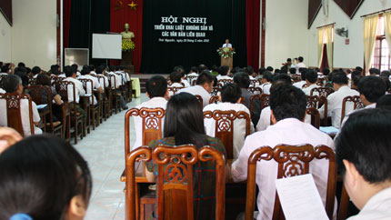 Các đại biểu đã được nghe đồng chí Lại Hồng Thanh và các thành viên trong Ban Tổ chức giới thiệu, phổ biến Luật Khoáng sản số 60/2010/QH12 ngày 17/11/2010; Nghị định số 15/2012/NĐ-CP ngày 09/3/2012 của Chính phủ quy định chi tiết thi hành một số điều của Luật Khoáng sản; Nghị định số 22/2012/NĐ-CP ngày 26/3/2012 của Chính phủ quy định về đấu giá quyền khai thác khoáng sản; Chỉ thị số 02/CT-TTg ngày 09/01/2012 của Thủ tướng Chính phủ về việc tăng cường công tác quản lý Nhà nước đối với các hoạt động thăm dò, khai thác, chế biến, sử dụng và xuất khẩu khoáng sản, đồng thời phổ biến Đề án ‘‘Tăng cường công tác quản lý Nhà nước về tài nguyên khoáng sản trên địa bàn tỉnh giai đoạn 2011- 2015’’