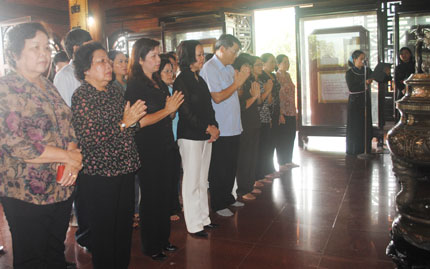 Chiều cùng ngày, Đoàn đã đến thắp hương tại Khu di tích lịch sử 27-7 ở xã Hùng Sơn, huyện Đại Từ.