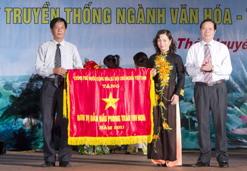 Tối 28/8, tại Không gian văn hóa Trà thuộc xã Tân Cương (Thành phố Thái Nguyên), Sở Văn hóa, Thể thao và Du lịch đã tổ chức Lễ đón nhận Cờ thi đua xuất sắc của Thủ tướng Chính phủ và vinh danh Nghệ sỹ ưu tú tỉnh Thái Nguyên được Chủ tịch nước phong tặng năm 2012. Chương trình là một trong những hoạt động hướng tới kỷ niệm 67 năm Cách mạng tháng Tám, Quốc khánh 2-9 và kỷ niệm Ngày truyền thống Ngành Văn hóa thông tin 28-8