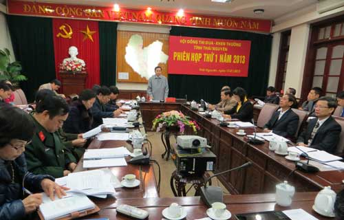 Các thành viên Hội đồng Thi đua Khen thưởng tỉnh đã thảo luận danh sách và tiến hành bỏ phiếu kín suy tôn các đơn vị có thành tích xuất sắc được các khối thi đua của tỉnh suy tôn đề nghị tặng Cờ thi đua xuất sắc và Bằng khen của UBND tỉnh năm 2012; danh sách các hộ nông dân có thành tích xuất sắc trong phong trào thi đua “Nông dân thi đua sản xuất, kinh doanh giỏi” để đề nghị Thủ tướng Chính phủ tặng Bằng khen. Nguyên tắc suy tôn thực hiện theo Quyết định số 18/2010/QĐ-UBND ngày 20/7/2010 của UBND tỉnh; tham khảo danh sách các đơn vị có gợi ý kiểm điểm của Thường vụ Tỉnh ủy khi triển khai thực hiện Nghị quyết TW 4 (khóa XI).