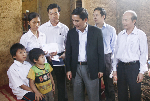 Nhân dịp này, đồng chí Vũ Hồng Bắc đã tặng 5 suất quà cho các gia đình nghèo; đại diện lãnh đạo Báo Thái Nguyên tặng 5 suất quà (mỗi suất trị giá trên 700.000 đồng) cho 5 học sinh nghèo vượt khó học giỏi của xóm Dộc Mấu 2 (ảnh).