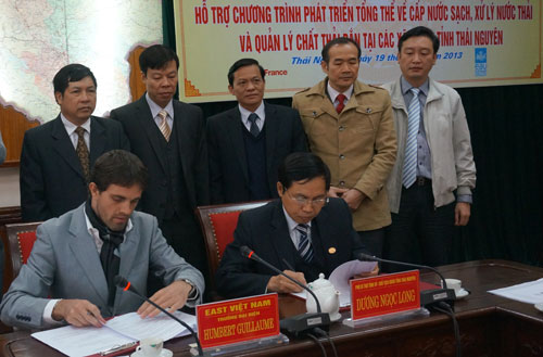 Ngày 19-12, UBND tỉnh Thái Nguyên và tổ chức EAST Việt Nam đã tổ chức Lễ ký kết thỏa thuận hợp tác Hỗ trợ chương trình phát triển tổng thể về cấp nước sinh hoạt, xử lý nước thải và quản lý chất thải rắn tại một địa phương trên địa bàn tỉnh. Tham dự có đồng chí Dương Ngọc Long, Phó Bí thư Tỉnh ủy, Chủ tịch UBND tỉnh; ông Humbert Guillaume, Trưởng đại diện tổ chức EAST Việt Nam cùng đại diện Trung tâm Nước sạch và Vệ sinh Môi trường nông thôn tỉnh, các sở, ban, ngành liên quan (ảnh).