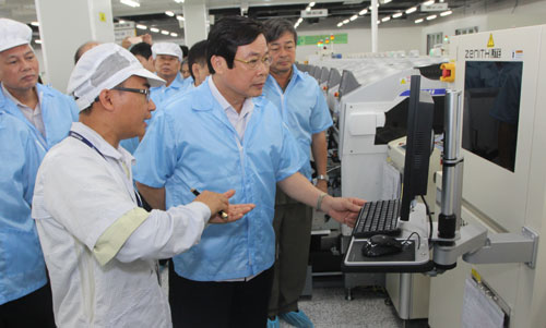 Ông Yoo Young-Bok, Tổng Giám đốc Công ty Điện tử Samsung Việt Nam đã báo cáo quá trình xây dựng, kết quả sản xuất kinh doanh của Công ty. Công ty Điện tử Samsung Thái Nguyên được khởi công xây dựng tháng 3-2013 và đã đi vào hoạt động từ tháng 3-2014. Hiện nay, Công ty có gần 16.000 cán bộ, công nhân. Bình quân mỗi tháng, Công ty sản xuất 8 triệu sản phẩm điện thoại và 2 triệu linh kiện điện tử. Công ty đề ra mục tiêu phấn đấu hết 2014 kim ngạch xuất khẩu đạt 8 tỷ USD và nâng tổng số lao động làm việc tại Thái Nguyên lên 20.000 người.