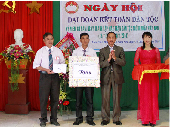 Nhân dịp này, đồng chí Phó Chủ tịch HĐND tỉnh đã trao các phần quà của Tỉnh ủy, HĐND, UBND, Ủy ban MTTQ tỉnh cho KDC; đi thăm và tặng quà 2 hộ có hoàn cảnh khó khăn. Ủy ban MTTQ tỉnh cũng đã trao các phần quà cho các hộ nghèo của thôn.