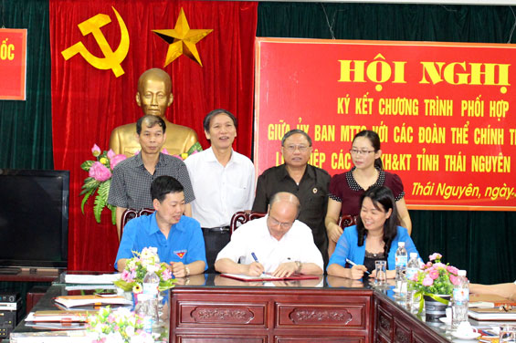 Ngày 27-4, tại Ủy ban Mặt trận tổ quốc (MTTQ) tỉnh đã diễn ra Hội nghị ký kết Chương trình phối hợp công tác giữa Ủy ban MTTQ tỉnh với các tổ chức đoàn thể chính trị - xã hội (gồm: Liên đoàn lao động, Hội Nông dân, Hội Liên hiệp phụ nữ, Hội Cựu chiến binh; Đoàn TNCS Hồ Chí Minh) và Liên hiệp các Hội Khoa học – Kỹ thuật tỉnh.