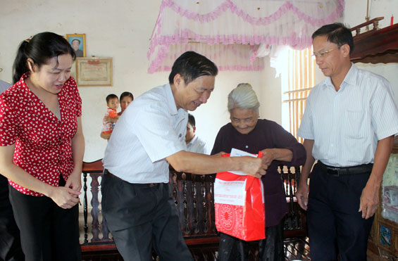 Nhân kỷ niệm 68 năm Ngày Thương binh - Liệt sĩ (27-7), ngày 23-7, Tỉnh ủy, Đoàn Đại biểu quốc hội, HĐND, UBND, Ủy ban MTTQ tỉnh và các cơ quan, đoàn thể của tỉnh đã tổ chức các đoàn đến thăm, tặng quà người có công, gia đình liệt sĩ và thương bệnh binh trên địa bàn tỉnh (trị giá mỗi suất quà là 1,1 triệu đồng).