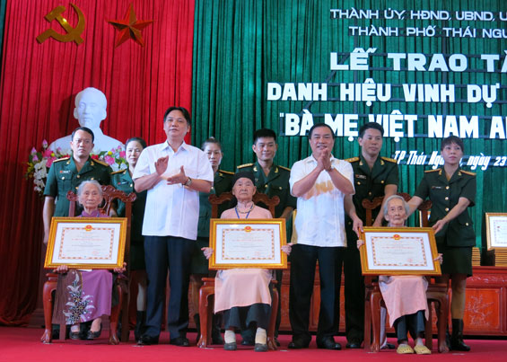 Tại buổi Lễ, thừa ủy quyền của Chủ tịch nước, các đồng chí lãnh đạo T.P Thái Nguyên đã trao tặng Huy hiệu và danh hiệu vinh dự Nhà nước Bà mẹ Việt Nam Anh hùng cho các Mẹ: Dương Thị Gái, phường Trung Thành; Tô Thị Gái, An Thị Khâm, phường Hoàng Văn Thụ và truy tặng huy hiệu và danh hiệu vinh dự Nhà nước "Bà mẹ Việt Nam Anh hùng" cho 40 Mẹ.