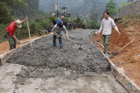 Dẫn chúng tôi đi trên con đường trải bê tông rộng rãi, bà Đào Thị Chiêm, Trưởng xóm Làng Bò 1 xã Phấn Mễ giới thiệu: Trước đây, 100% trục đường trong xóm đều là đường đất, hễ trời mưa là lầy lội, đi lại rất khó khăn. Sau khi được tuyên truyền, bà con trong xóm đã đồng thuận và tình nguyện hiến hàng trăm m2 đất, ngày công lao động, đối ứng tiền làm đường giao thông. Tuyến đường có chiều dài hơn 600m, tổng kinh phí trên 700 triệu đồng, trong đó Nhà nước hỗ trợ 65%, còn lại do nhân dân đối ứng. Trong năm 2013 và 2014, để phục cho sản xuất nông nghiệp, người dân trong xóm cũng đã hiến trên 1.000m2 đất, đối ứng hơn 200 triệu đồng để làm gần 2km đường giao thông nội đồng.