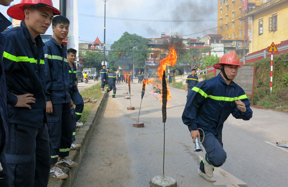 Hưởng ứng ngày toàn dân phòng cháy chữa cháy (PCCC) (ngày 4-10), ngày 24-9, tại đường Bắc Sơn, phường Hoàng Văn Thụ (T.P Thái Nguyên), Phòng Cảnh sát PCCC và Cứu hộ cứu nạn (Công an tỉnh) đã tổ chức Hội thao nghiệp vụ PCCC lực lượng chuyên nghiệp.