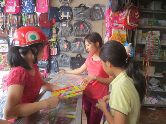 Theo chị Đỗ Thị Kim Huế, chủ cửa hàng thì mặt hàng văn phòng phẩm có xuất xứ từ Việt Nam được bày bán tại đây chiếm đến 90%... Những sản phẩm nhập ngoại từ Đức, Nhật Bản... có giá bán khá cao, chủ yếu người mua là những người đi làm, lượng tiêu thụ khá chậm nên cửa hàng nhập rất ít. Riêng hàng của Trung Quốc hiện còn bày bán là hàng tồn, đã hơn 3 năm nay cửa hàng không nhập thêm về bởi hàng không bán được. Hiện nay, việc mua sắm đồ dùng học tập cho con em đều do ông bà, cha mẹ các em đảm nhiệm, vì thế mặc dù hàng Trung Quốc mẫu mã đa dạng, màu sắc sặc sỡ, giá bán có phần rẻ hơn nhưng vì lo sợ các chất độc hại có trong sản phẩm ảnh hưởng đến trẻ nhỏ nên các bậc phụ huynh rất dè chừng. Các mặt hàng được sản xuất trong nước bán khá chạy bởi mẫu mã ngày càng được cải tiến, giá bán phù hợp, chất lượng ngày càng được nâng lên. Chị Nguyễn Thị Mai, một khách mua hàng tại đây cho hay: Tôi làm công tác hành chính, văn thư, giấy tờ sổ sách rất nhiều nên tôi thường mua sắm văn phòng phẩm. Trước tôi thường mua bút mực nước của Hàn Quốc, Nhật Bản với giá từ 15-20 nghìn đồng/cái, giờ thì tôi chọn bút của Bến Nghé, viết trơn, mực rõ nét mà giá chỉ có 5 nghìn đồng. Ngoài ra còn có những sản phẩm khác như kệ, khay đựng hồ sơ, ống cắm bút do Việt Nam sản xuất có mẫu mã đẹp, chất lượng tương đương mà giá thành rẻ hơn rất nhiều.