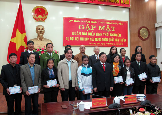 Tại buổi gặp mặt, Ban Thi đua Khen thưởng tỉnh đã công bố quyết định về việc thanh lập đoàn Đại biểu dự Đại hội thi đua yêu nước toàn quốc lần thứ IX. Đoàn Đại biểu tỉnh Thái Nguyên đi dự Đại hội gồm 19 đại biểu, là những người tiêu biểu trên các lĩnh vực công tác, có đóng góp tích cực vào công tác chỉ đạo phong trào thi đua yêu nước của tỉnh, được tôn vinh qua các hội nghị điển hình tiên tiến, qua Đại hội Thi đua yêu nước lần thứ IV của tỉnh. Đại biểu cao tuổi nhất là ông Vũ Hữu Giao, Chủ tịch Hội Khuyến học huyện Đồng Hỷ, sinh năm 1938; đại biểu trẻ nhất là em Nguyễn Thị Hoài Thu, học sinh Trường THPT Chuyên Thái Nguyên, sinh năm 1997.