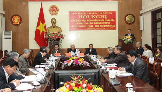 Phát biểu tại Hội nghị, PGS-TS Phạm Tất Dong, Phó Chủ tịch Hội Khuyến học Việt Nam và đồng chí Phạm Hoàng Sơn, Ủy viên Ban Thường vụ, Trưởng ban Dân vận Tỉnh ủy đã đánh giá cao Hội Khuyến học tỉnh trong công tác phối hợp tuyên truyền, triển khai thực hiện hiệu quả hoạt động khuyến học, khuyến tài, xây dựng xã hội học tập. Và Thái Nguyên cũng là tỉnh sớm nhất trong toàn quốc triển khai thực hiện các quyết định của Chính phủ triển khai Đề án “Xây dựng xã hội học tập giai đoạn 2012-2020’. Để đạt được các mục tiêu theo Đề án, các đồng chí cũng đề nghị Hội Khuyến học tỉnh tiếp tục chủ động làm tốt công tác tham mưu, phối hợp với các ngành, địa phương phát động sâu rộng phong trào thi đua xây dựng gia đình, dòng họ, cộng đồng, đơn vị học tập, để mỗi cá nhân thấm nhuần coi việc học tập là nhu cầu tự thân, coi gia đình học tập là tế bào của xã hội học tập.