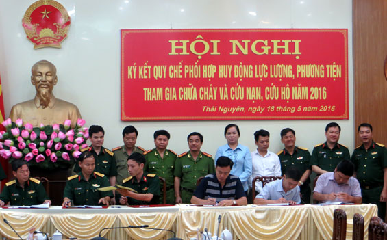 Chiều 18-5, tại UBND tỉnh, Đại tá Nguyễn Văn Thực, Giám đốc Cảnh sát Phòng cháy và Chữa cháy (PCCC) tỉnh đã chủ trì Hội nghị ký kết Quy chế phối hợp huy động lực lượng, phương tiện tham gia chữa cháy và cứu nạn cứu hộ năm 2016. Dự Hội nghị có các đồng chí: Vũ Hồng Bắc, Phó Bí thư Tỉnh ủy, Chủ tịch UBND tỉnh; Đại tá Trần Trung Thành, Phó Cục trưởng Cục Cảnh sát PCCC.