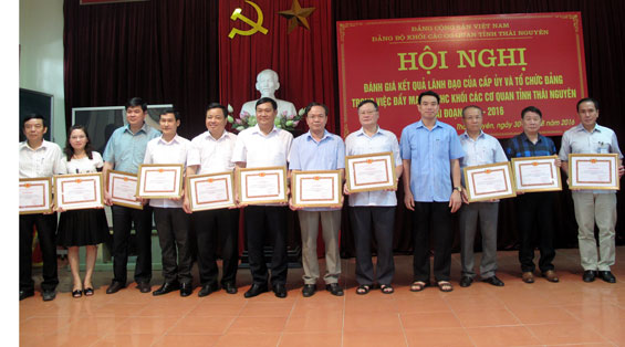 Tại Hội nghị, Đảng ủy Khối đã tặng Giấy khen cho 12 tập thể có thành tích xuất sắc trong việc lãnh đạo đẩy mạnh CCHC giai đoạn 2006-2016.