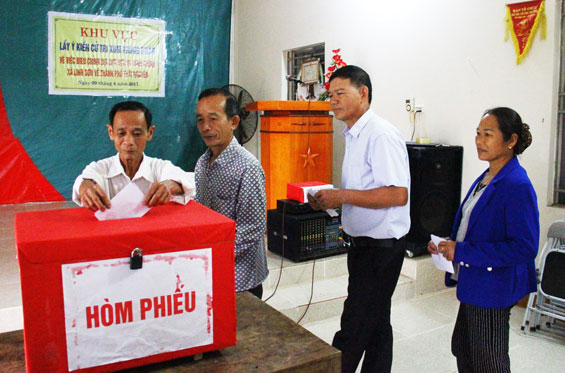 Cử tri xóm Thông Nhãn, xã Linh Sơn bỏ phiếu lấy ý kiến về điều chỉnh địa giới hành chính.