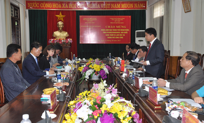 Sau khi nghe giới thiệu về T.P Mungyeong, đại diện lãnh đạo T.P Sông Công đã thông tin nhanh về tình hình phát triển kinh tế, xã hội của Thành phố trong thời gian qua, đồng thời bày tỏ mong muốn 2 thành phố sẽ tăng cường được mối quan hệ giao lưu, hợp tác, cùng phát triển, đặc biệt là trong lĩnh vực phát triển quy hoạch không gian đô thị, xây dựng nông thôn mới và phát triển du lịch.
