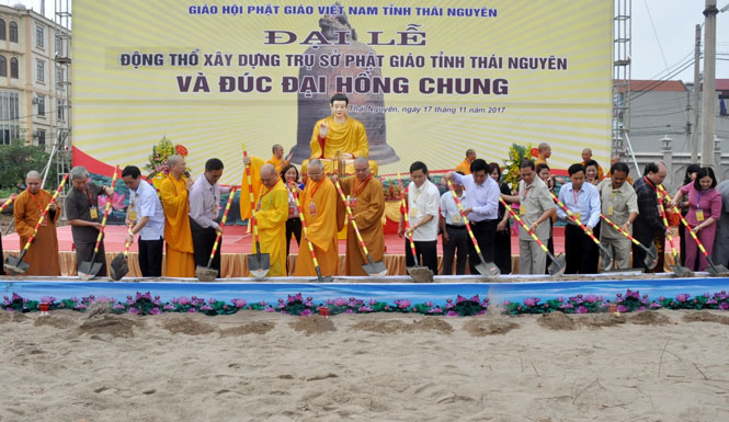 Năm 2005, Giáo hội Phật giáo Việt Nam tỉnh Thái Nguyên được thành lập, tuy nhiên chưa có nơi sinh hoạt chung cho tăng ni, phật tử. Trước nhu cầu đó, đầu năm 2017, UBND tỉnh đã cấp cho Ban Trị sự Giáo hội Phật giáo Việt Nam tỉnh Thái Nguyên 2.500m2 đất tại tổ 1, phường Hoàng Văn Thụ để xây dựng Văn phòng trụ sở làm việc, với tổng mức đầu tư là 6 tỷ đồng. Ngoài ra, tại buổi lễ, Ban Trị sự Giáo hội Phật giáo Việt Nam tỉnh Thái Nguyên cũng đã tổ chức Lễ hội đúc chuông với 3 quả chuông lớn, nặng lần lượt là 1.008kg, 608kg, 108kg và 5 quả chuông nhỏ có tổng trị giá 1,6 tỷ đồng. Toàn bộ số tiền xây trụ sở văn phòng Giáo hội Phật giáo Việt Nam tỉnh Thái Nguyên và 8 quả chuông do các nhà hảo tâm, doanh nghiệp, tăng ni, phật tử trong và ngoài tỉnh ủng hộ.