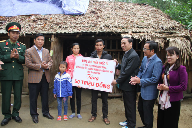 Nhân dịp này, đồng chí Trần Quốc Tỏ đã trao 100 triệu đồng cho gia đình anh Lương Văn Tinh và gia đình chị Ma Thị Minh Hay, xóm Ao Then, xã Yên Đổ, huyện Phú Lương có hoàn cảnh đặc biệt khó khăn.
