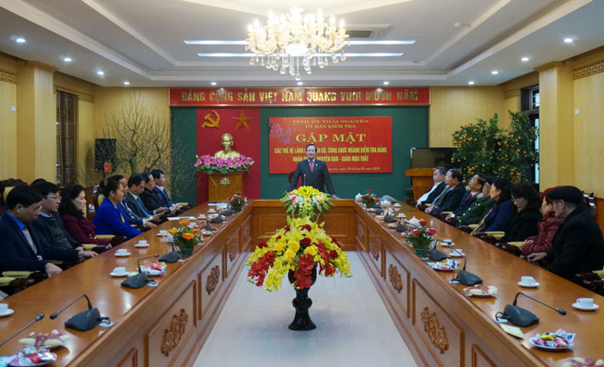 Tại buổi gặp mặt, đồng chí Nguyễn Văn Khoa đã gửi lời thăm hỏi chân thành và lời chúc mừng năm mới sức khỏe, hạnh phúc tới các cán bộ hưu trí. Đồng thời thông báo khái quát tình hình thực nhiệm nhiệm vụ chính trị, kết quả phát triển kinh tế - xã hội nổi bật của tỉnh. Đối với công tác Kiểm tra Đảng, Ủy ban Kiểm tra và đội ngũ cán bộ kiểm tra các cấp của tỉnh đã thực hiện tốt công tác kiểm tra, giám sát, thi hành kỷ luật trong Đảng, qua đó góp phần thực hiện thắng lợi các nhiệm vụ chính trị, được cán bộ, đảng viên và nhân dân tin cậy. Đồng chí cũng bày tỏ mong muốn các cán bộ hưu trí sẽ chia sẻ, đóng góp nhiều kinh nghiệm hơn nữa để ngành Kiểm tra Đảng tiếp tục phát huy những kết quả đã đạt được.