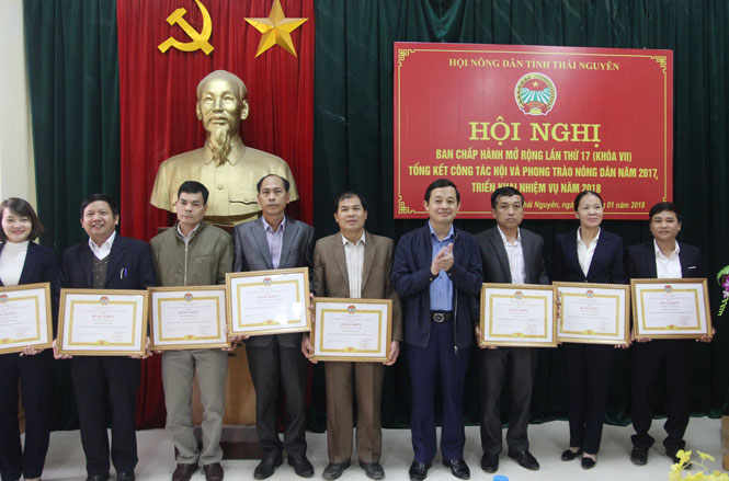 Nhân dịp này, Trung ương Hội Nông dân Việt Nam đã trao Bằng khen cho 10 tập thể, 14 cá nhân; Tỉnh hội trao Bằng khen cho 64 tập thể, 43 cá nhân có thành tích xuất sắc trong công tác Hội và phong trào nông dân năm 2017.
