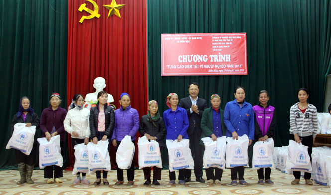 Nhân dịp này, Công ty Cổ phần Thương mại Thái Hưng cũng trao 100 suất quà (mỗi suất trị giá 500 nghìn đồng) cho các hộ nghèo trên địa bàn xã.