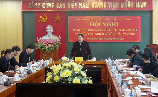 Tại Hội nghị tổng kết công tác cải cách tư pháp (CCTP) năm 2017 và triển khai nhiệm vụ năm 2018 tổ chức chiều 6-2, Ban Chỉ đạo CCTP tỉnh đã thảo luận và thống nhất 11 nhiệm vụ trọng tâm đối với công tác này trong năm nay. Đồng chí Bùi Xuân Hòa, Phó Bí thư Thường trực Tỉnh ủy, Chủ tịch HĐND tỉnh, Trưởng Ban Chỉ đạo Cải cách tư pháp tỉnh chủ trì Hội nghị. Dự Hội nghị có các đồng chí Ủy viên Ban Thường vụ Tỉnh ủy: Đặng Xuân Trường, Trưởng Ban Nội chính Tỉnh ủy; Nhữ Văn Tâm, Phó Chủ tịch Thường trực UBND tỉnh.