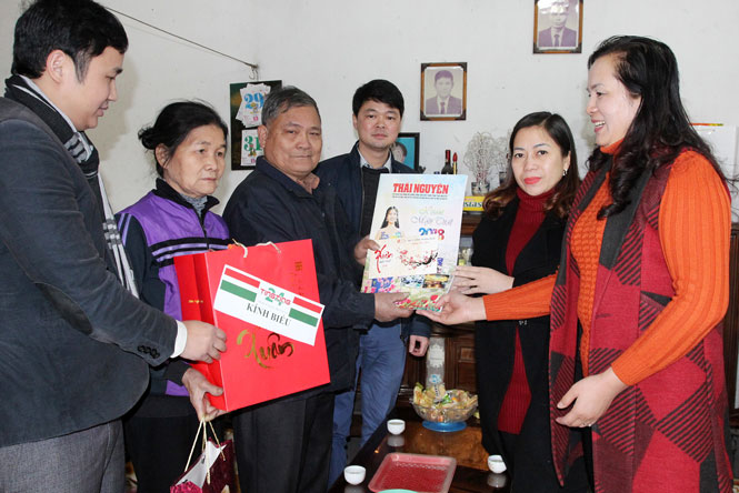 Đoàn đã đến thăm gia đình bà Nguyễn Thị Tám, xóm Bến Đò, xã Linh Sơn (T.P Thái Nguyên) là mẹ của Thượng úy Bùi Hữu Dư, hiện đang công tác tại Vùng 4 Hải Quân; ông Nguyễn Trọng Việt, xóm 14b, xã Phúc Hà (T.P Thái Nguyên), bố của Trung úy Nguyễn Trọng Đạt đang công tác tại Đảo Sinh Tồn; chị Dương Thị Hồng Nụ, xóm Diễn Cầu, xã Tân Đức (Phú Bình), vợ của Trung úy Dương Tuấn Hải, hiện đang công tác tại Đảo Trường Sa Lớn; ông Chu Ngọc Bình, tổ 31 phường Hương Sơn (T.P Thái Nguyên), bố của Trung úy Chu Ngọc Huấn, máy trưởng tàu HQ561 làm nhiệm vụ trên vùng biển Quần đảo Trường Sa. Đoàn đã tặng quà các gia đình trị giá 1,5 triệu đồng/suất và thăm hỏi động viên các gia đình đón Tết Nguyên đán đầm ấm, an vui; đồng thời gửi lời chúc cán bộ, chiến sĩ đang công tác tại khu vực Quần đảo Trường Sa yên tâm công tác, bảo vệ tốt vùng biển thiêng liêng của Tổ quốc.