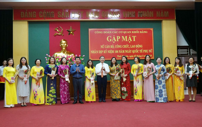 Sáng 7-3, Công đoàn các cơ quan Khối Đảng tỉnh đã tổ chức gặp mặt nữ cán bộ, công chức, lao động thuộc công đoàn các ban Xây dựng Đảng, Văn phòng Tỉnh ủy, Ban Bảo vệ và chăm sóc sức khỏe cán bộ tỉnh nhân kỷ niệm 108 năm Ngày Quốc tế Phụ nữ (8-3).