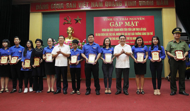 Nhân dịp này, Tỉnh ủy đã trao tặng 100 biểu trưng khen thưởng các đại biểu thanh niên tiên tiến làm theo lời Bác và đại diện các tác giả, nhóm tác giả đạt giải thưởng Sáng tạo trẻ tỉnh lần thứ XV, năm 2018 (ảnh).
