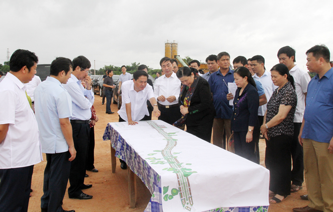 Phó Chủ tịch Thường trực Quốc hội Tòng Thị Phóng nghe lãnh đạo UBND thành phố Thái Nguyên giới thiệu về Dự án đường Bắc Sơn kéo dài (đường Hồ Núi Cốc).