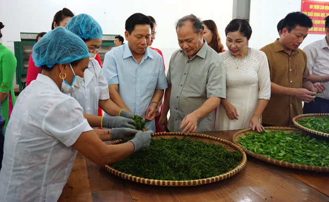 Trước đó, trong buổi sáng cùng ngày, Thứ trưởng Hoàng Văn Thắng và Đoàn công tác đã đi kiểm tra thực tế vùng nguyên liệu sản xuất của Công ty CP Chè Hà Thái tại xã La Bằng (Đại Từ).