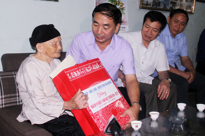Đồng chí Phạm Hoàng Sơn tặng quà bà Nguyễn Thị Thìn, mẹ liệt sĩ Ma Đình Liên xóm Làng Quyền, xã Lam Vỹ ( Định Hóa).