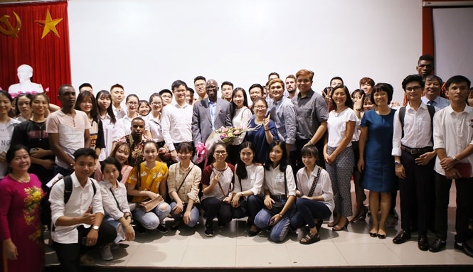 Đoàn công tác của Ngân hàng Thế giới tại buổi đối thoại với sinh viên Đại học Thái Nguyên.