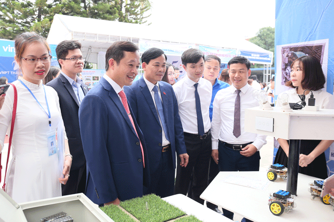 Các đại biểu tham quan “Không gian sáng tạo sinh viên” được trưng bày trong khuôn viên tổ chức Đại hội.