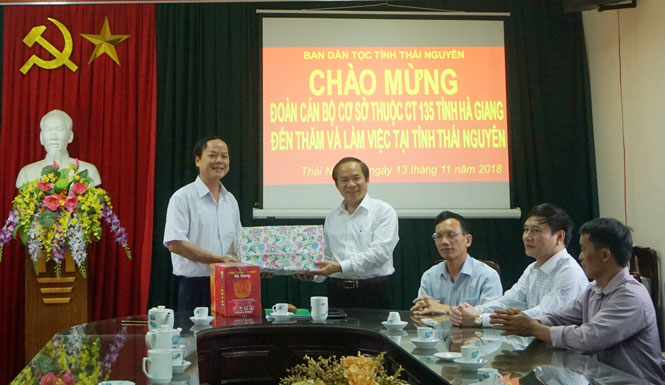 Ngày 13-11, Đoàn cán bộ cơ sở và cộng đồng thuộc Chương trình phát triển kinh tế - xã hội các xã đặc biệt khó khăn vùng dân tộc thiểu số và miền núi (Chương trình 135) của tỉnh Hà Giang đã đến tham quan, học tập và trao đổi kinh nghiệm với tỉnh Thái Nguyên.