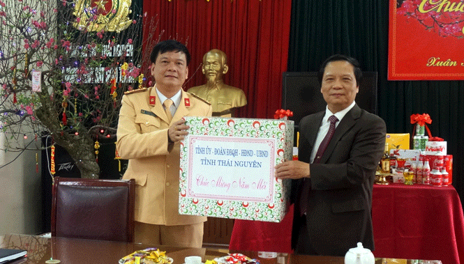 *Đoàn do đồng chí Lê Văn Tuấn, Ủy viên Ban Thường vụ, Trưởng Ban Tuyên giáo Tỉnh ủy làm Trưởng đoàn đã đến thăm, chúc Tết cán bộ, chiến sĩ Phòng Cảnh sát giao thông, Công an tỉnh.