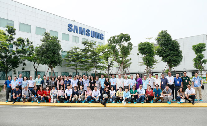 Nối tiếp chuỗi hoạt động trong chương trình Hội thảo Báo Đảng các tỉnh trung du, miền núi phía Bắc, sáng 14-6, Đoàn đại biểu của các cơ quan báo chí đã có chuyến thăm quan và tìm hiểu về hoạt động sản xuất tại Nhà máy Samsung điện tử Thái Nguyên (T.X Phổ Yên) - (Ảnh).