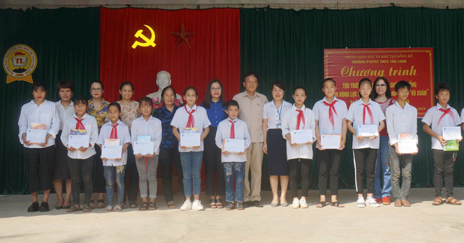 Nhân ngày tựu trường của Trường Phổ thông Dân tộc bán trú THCS Tân Long (Đồng Hỷ), ngày 19-8, Tỉnh Đoàn Thái Nguyên đã phối hợp với đại diện gia đình Anh hùng Liệt sĩ Vũ Xuân trao 26 suất học bổng với tổng trị giá trên 10 triệu đồng (trích từ quỹ Khuyến học Vũ Xuân) cho các học sinh nghèo vượt khó học giỏi của xã Tân Long và tặng gần 700 quyển vở cho các em học sinh Nhà trường(ảnh).