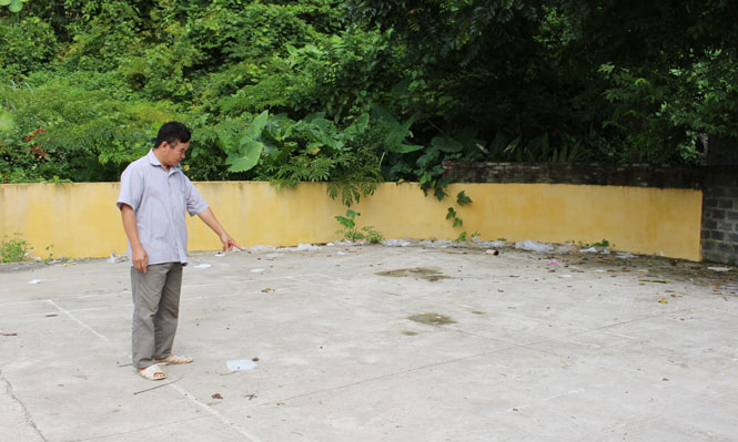 Có mặt tại khu vực kho thuốc trừ sâu cũ, chúng tôi thấy hiện nay toàn bộ khu vực này đã được san lấp đất, đổ bê tông để làm sân chợ Quán Vuông. Vị trí này nằm sát với chân núi đá và cao hơn nhiều nhà dân sinh sống ở xóm Quán Vuông 1, Quán Vuông 3, hộ dân sinh sống gần nhất chỉ cách kho thuốc trừ sâu cũ hơn 30m. ơ các xóm trên đã có nước máy từ khoảng 10 năm trở lại đây, nhưng vì nguồn nước không đều, nên phần lớn người dân vẫn sử dụng nước giếng khơi và giếng khoan.