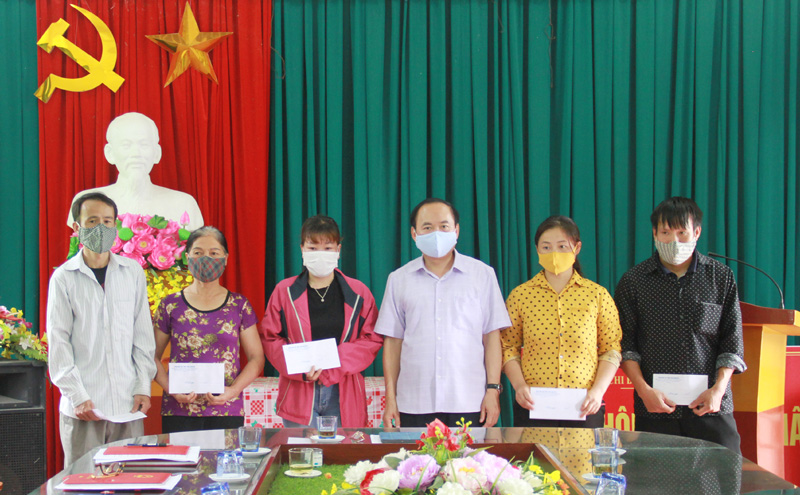 Trước đó đoàn đã đi thực tế, nắm tình hình tại xã Cúc Đường và tặng 5 suất quà cho các hộ nghèo bị ảnh hưởng bởi dịch COVID-19 (ảnh).