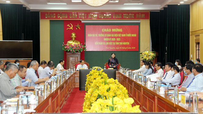 Cũng tại buổi làm việc, các đại sứ, trưởng cơ quan đại diện Việt Nam ở nước ngoài và đại diện các sở, ban, ngành, hiệp hội doanh nghiệp của tỉnh đã trao đổi, thảo luận nhiều vấn đề về kết nối thu hút đầu tư, hợp tác quốc tế giữa Thái Nguyên với các nước; đẩy nhanh tiến độ thực hiện các dự án đầu tư nước ngoài đang được triển khai trên địa bàn tỉnh…