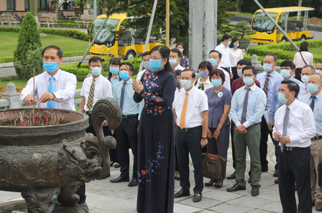 Các đại biểu dâng hương tưởng niệm Chủ tịch Hồ Chí Minh tại Nhà truyền thống trong khuôn viên Trụ sở Tỉnh ủy.