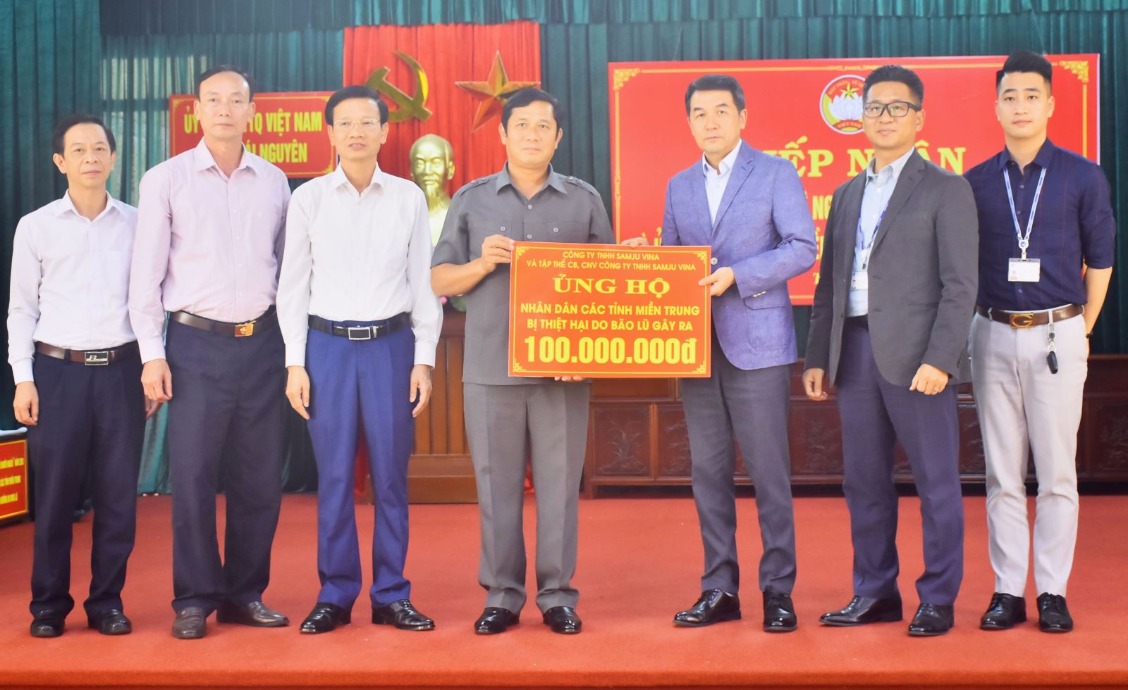 Chiều 22-10, Ban Thường trực Uỷ ban MTTQ tỉnh tổ chức tiếp nhận sự ủng hộ của 2 đơn vị doanh nghiệp: Công ty TNHH SamJu Vina (Khu công nghiệp Điềm Thụy, Phú Bình) và Công ty CP Môi trường và Công trình Đô thị Thái Nguyên đối với đồng bào các tỉnh miền Trung, Tây Nguyên bị thiệt hại nặng nề do mưa lũ.
