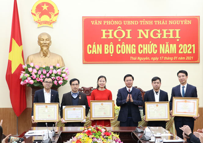 Nhân dịp này, Văn phòng UBND tỉnh đã trao Bằng khen của Thủ tướng Chính phủ; Bộ trưởng, Chủ nhiệm Văn phòng Chính phủ; Ban Thường vụ Tỉnh uỷ, UBND tỉnh cho các tập thể, cá nhân có nhiều thành tích trong công tác năm 2020 và trong giai đoạn 2015-2020.