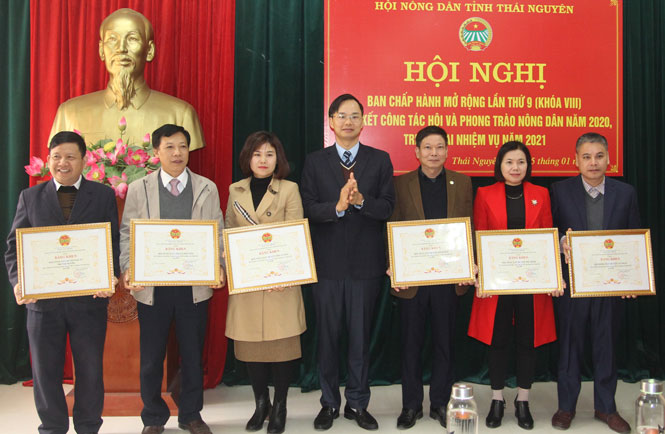 Tại Hội nghị, Hội Nông dân tỉnh tặng Bằng khen cho 60 tập thể, 43 cá nhân có thành tích xuất sắc trong công tác Hội và phong trào nông dân năm 2020.