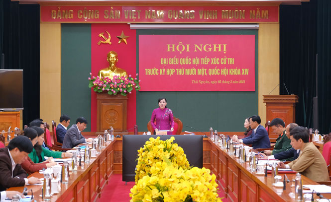 Tại Hội nghị, đã có 10 lượt ý kiến của đại diện cử tri tại các huyện, thành phố, thị xã gửi đến Đoàn ĐBQH tỉnh, các ý kiến xoay quanh một số vấn đề, như: cử tri huyện Phú Bình đề nghị Chính phủ và các Bộ, ngành Trung ương nâng mức đầu tư xây dựng hạ tầng cơ sở đối với các đơn vị hành chính cấp huyện phấn đấu đạt chuẩn nông thôn mới. Cử tri huyện Định Hóa đề nghị Chính phủ quan tâm, bố trí nguồn lực để triển khai Dự án Đường Hồ Chí Minh (giai đoạn 2), đoạn qua tỉnh Thái Nguyên; tiếp tục ban hành các chính sách thúc đẩy phát triển kinh tế - xã hội vùng đồng bào dân tộc thiểu số và miền núi, giai đoạn 2021-2025. Cử tri T.P Thái Nguyên đề nghị Trung ương bố trí nguồn lực để hỗ trợ T.P Thái Nguyên hoàn thiện hệ thống hạ tầng kỹ thuật nhằm hướng đến mục tiêu xây dựng đô thị thông minh. Cử tri huyện Đại Từ đề nghị xem xét, giải quyết chế độ chính sách cho quân nhân nhập ngũ sau ngày 30-4-1975 theo Quyết định số 62/2011/QĐ-TTg, ngày 9-11-2011 của Thủ tướng Chính phủ; sửa đổi một số nội dung còn bất cập, vướng mắc trong quá trình triển khai thực hiện Luật Đất đai, Luật Khoáng sản…