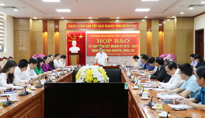 Phát biểu kết luận, đồng chí Phó Chủ tịch Thường trực HĐND tỉnh đã thông tin nhanh một số kết quả nổi bật trong hoạt động của HĐND tỉnh Thái Nguyên khóa XIII. Đồng chí mong muốn các cơ quan báo chí thông tin, phản ánh kịp thời, đầy đủ, chính xác về Kỳ họp và kết quả hoạt động của HĐND tỉnh trong nhiệm kỳ 2016-2021 để cử tri, nhân dân trên địa bàn tiện theo dõi, nắm bắt, qua đó góp phần làm nên thành công chung của Kỳ họp.